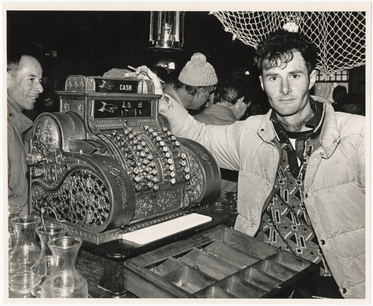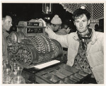Ross Stainton, a sales manages for CRC Salvage, with an American-build register he won during the Fails Café contents auction at 82 Cashel Street.