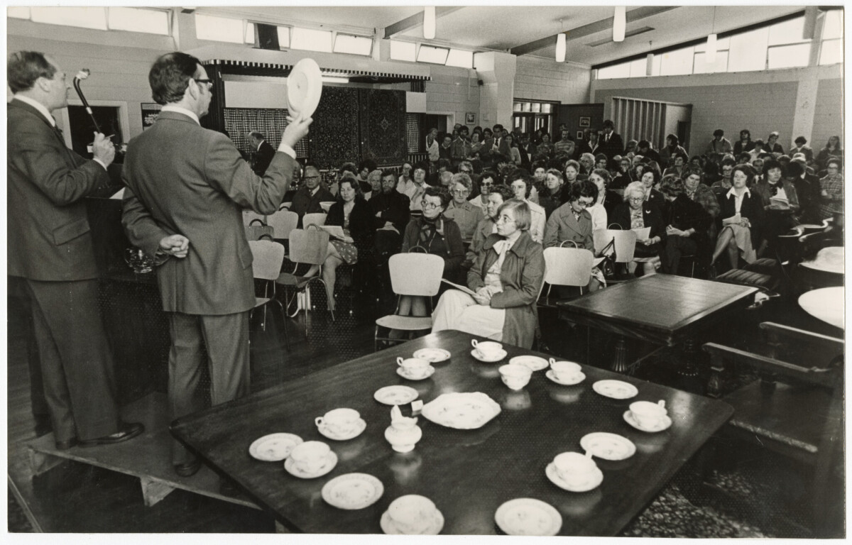 Auctioneer Mr M. H. McCrostie of McCrosties Fine Art Auctions during the auctioning of china at an antique and fine art auction at the Te Kura Lounge, 5 Ayr Street in Riccarton.