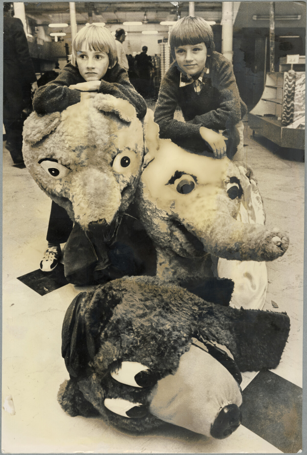 Dean McNamm (left) and his brother Brendon McNamm with items for sale at the DIC department store auction from the building on Cashel Street following the merger of DIC and Beaths.