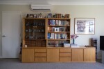 View of a bookshelf and dresser in a lounge in a retirement village town house in Aidanfield.