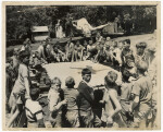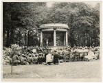 Assistant area commissioner of the Boy Scouts, G.H. Coley, speaks to a gathering at the Bandsmen's Memorial Rotunda, Christchurch Botanic Gardens during the Founders' Day ceremony.