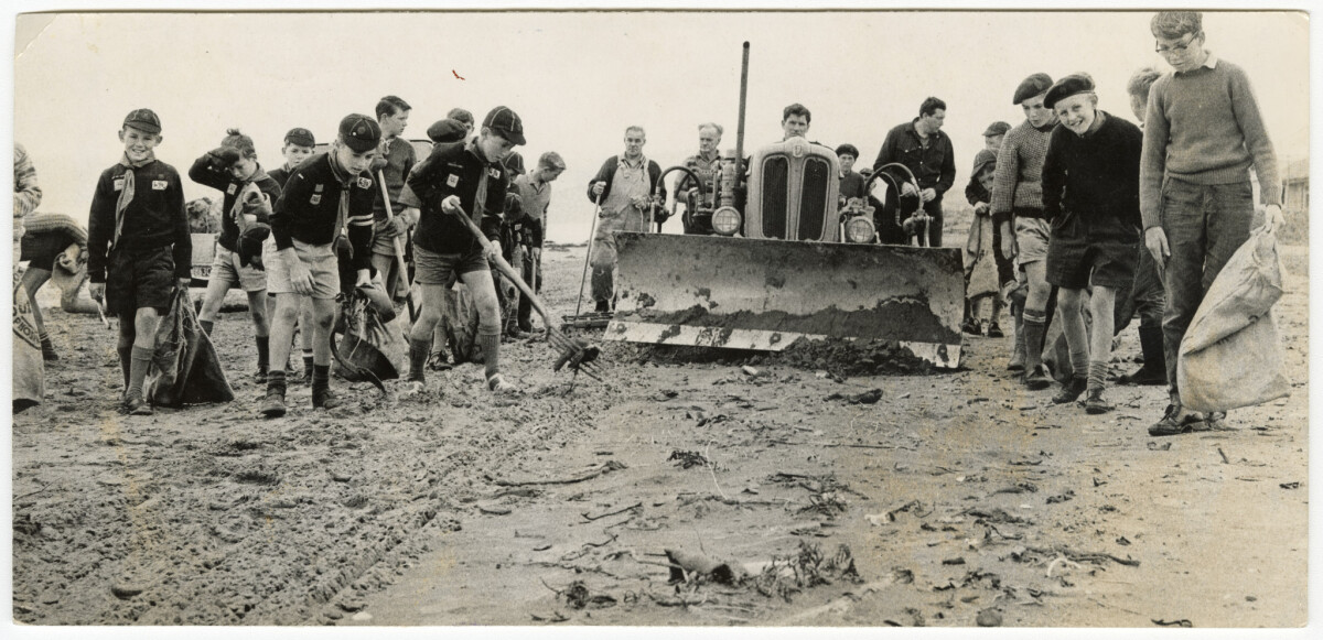 New Brighton scouts and helpers cleaning the beach in Operation Clean-up.