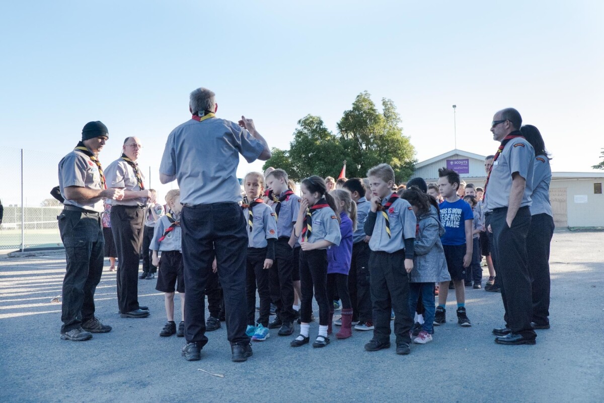 Halswell Scout group assembles for Anzac Day parade
