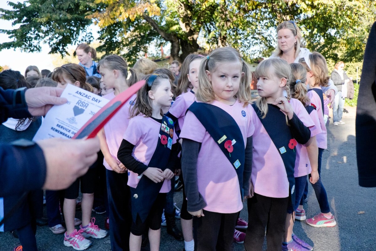 Girl guides and Brownies assemble for the Anzac Day parade