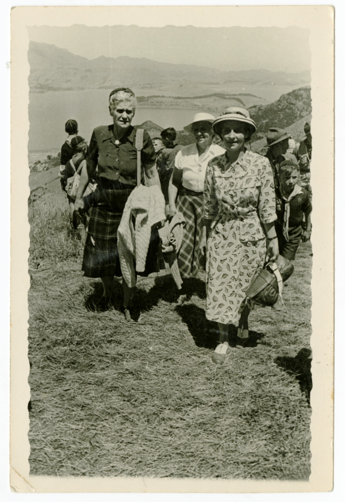 Port Hills scout hike 1948. Margosue Penney lady directly in front.