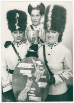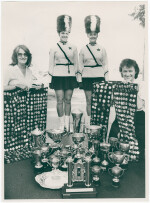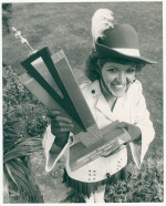 Trish Anderson of Acme Pioneers holds a marching trophy.