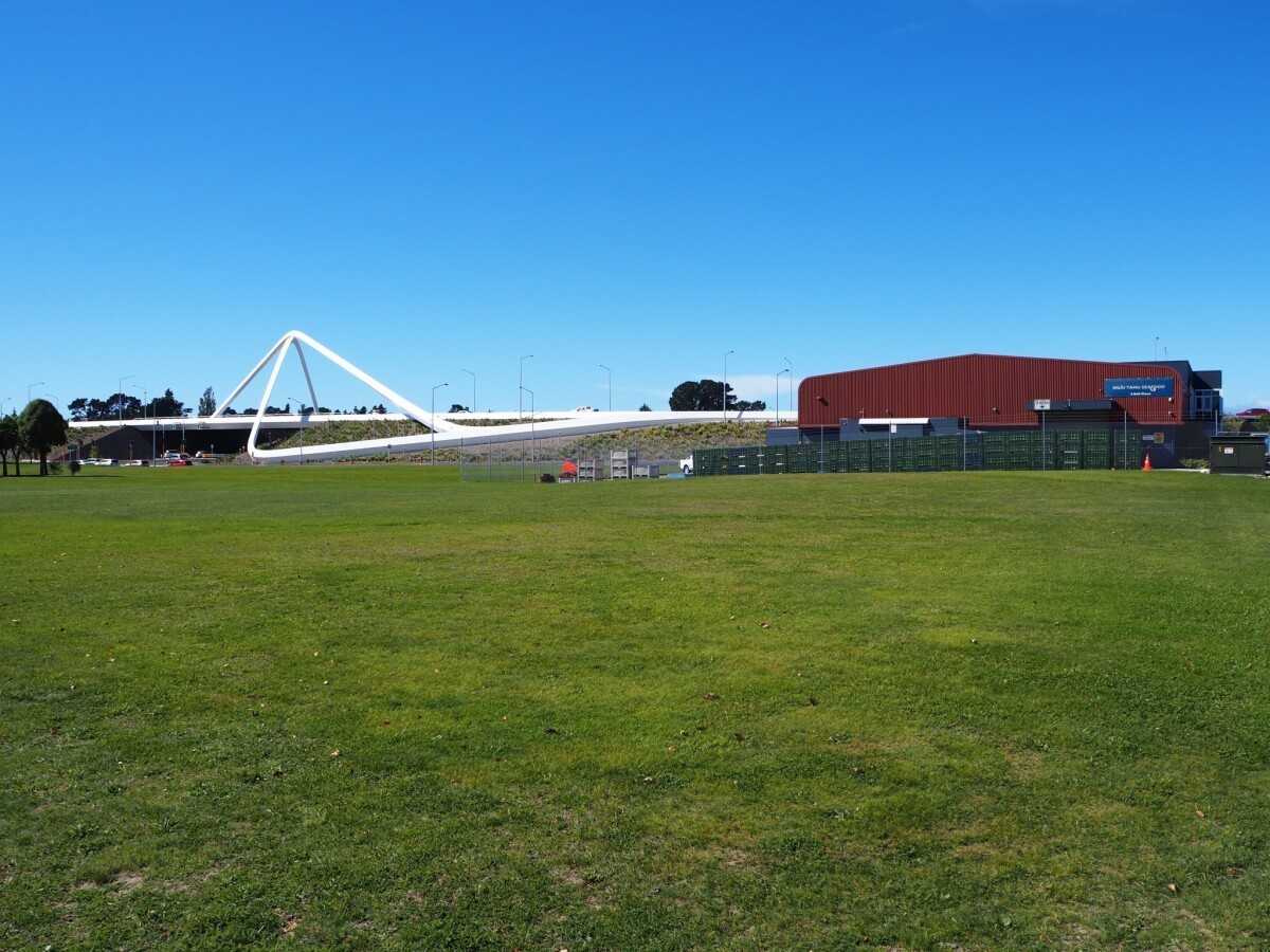View of the Memorial Avenue Gateway Bridge on State Highway 1 and Ngai Tahu Seafood, taken from Bolt Place.