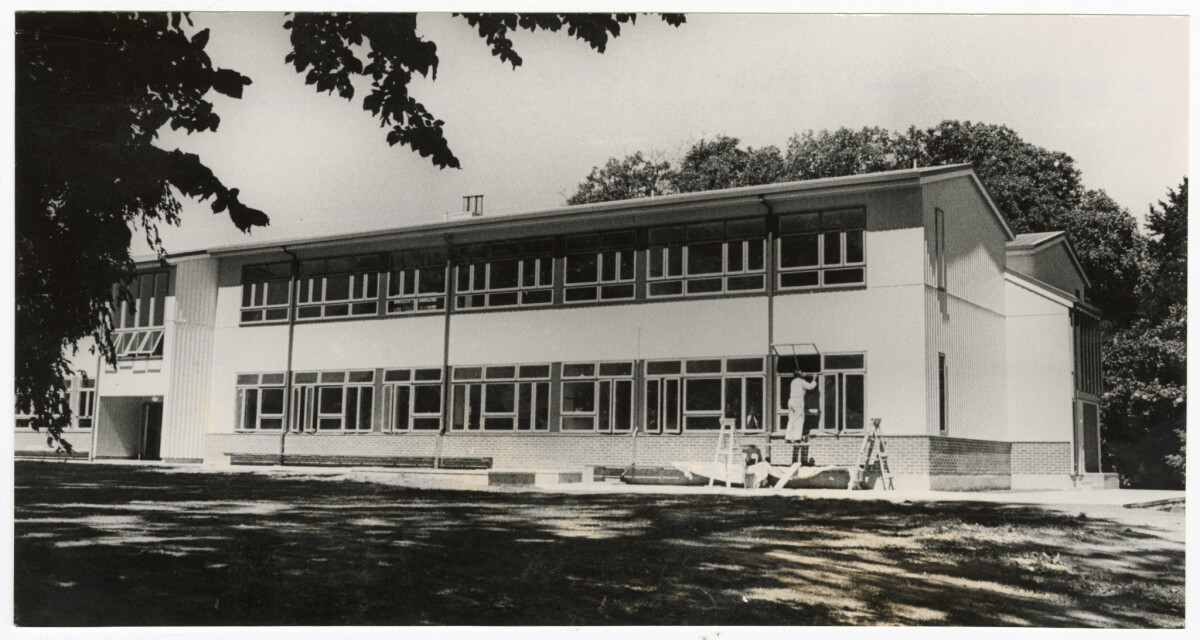 Exterior of an extension to the Jobberns wing at Avonside Girls' High School during the final stages of construction. The extension is built on the site of the old Davis House.