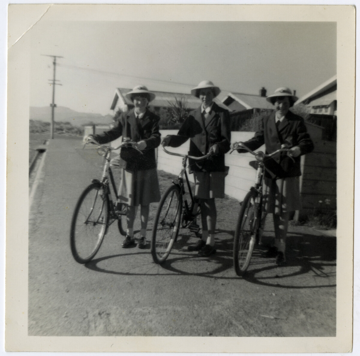 Tessa, Chalice and Deidre at 281a Marine Parade, New Brighton. First day at Aranui High School.