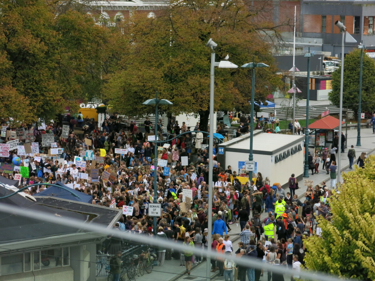 View from Tūranga of Student protest against climate change