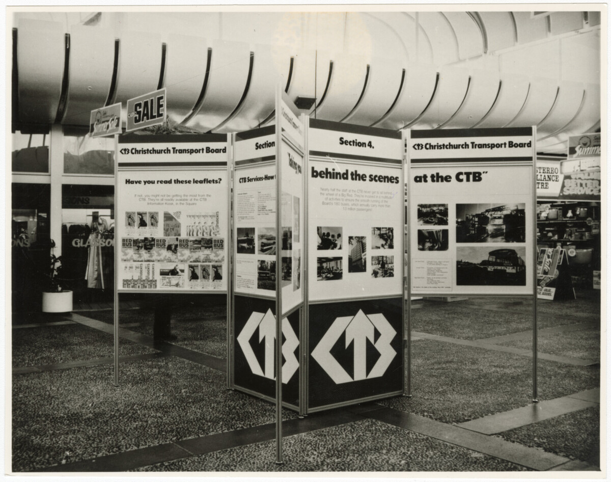 Christchurch Transport Board display boards at Northlands Shopping Mall in Papanui.