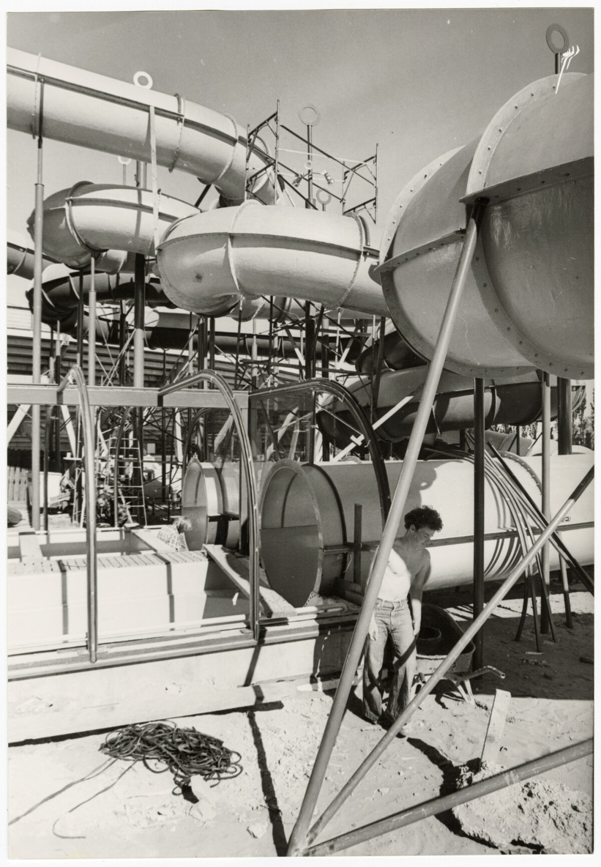 Exterior of the hydroslides at QEII Park during the final stages of construction.