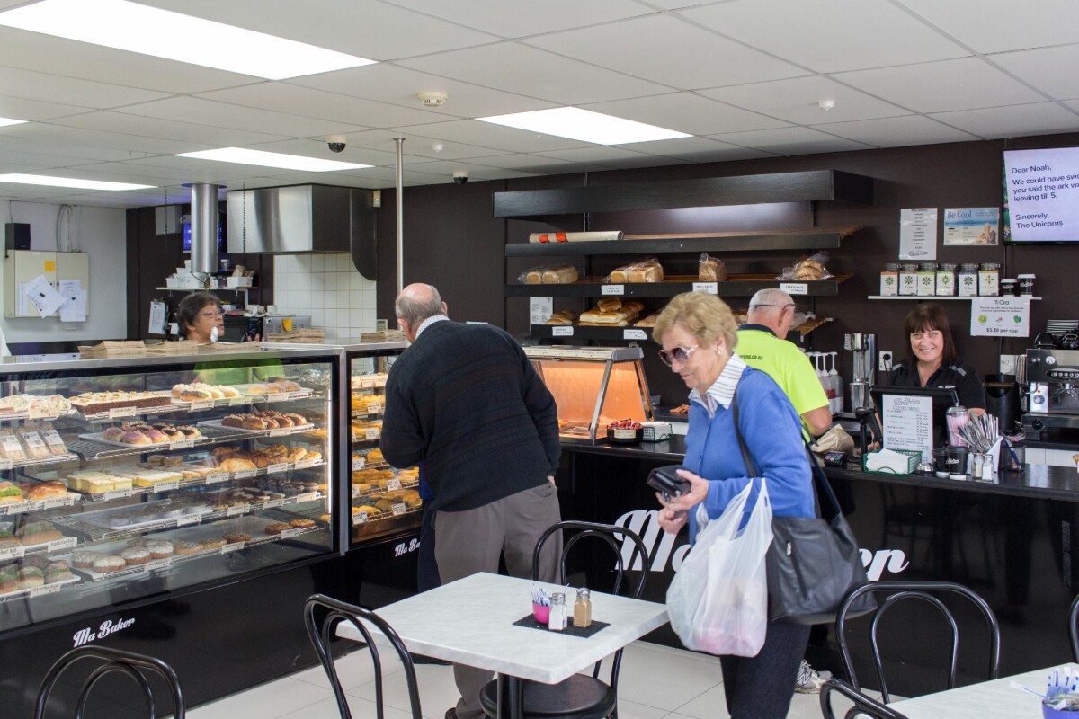 Interior of customers, cabinet food and welcoming service at Ma Bakery in Bishopdale Village Mall, Bishopdale.