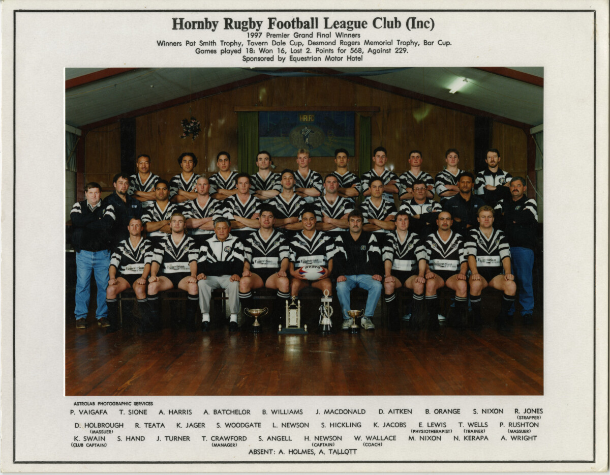Hornby Rugby League Football 1997. Premier Grand Final Winners coached by former Kiwi Wayne Wallace, and also had Kiwi representative Simon Angell.