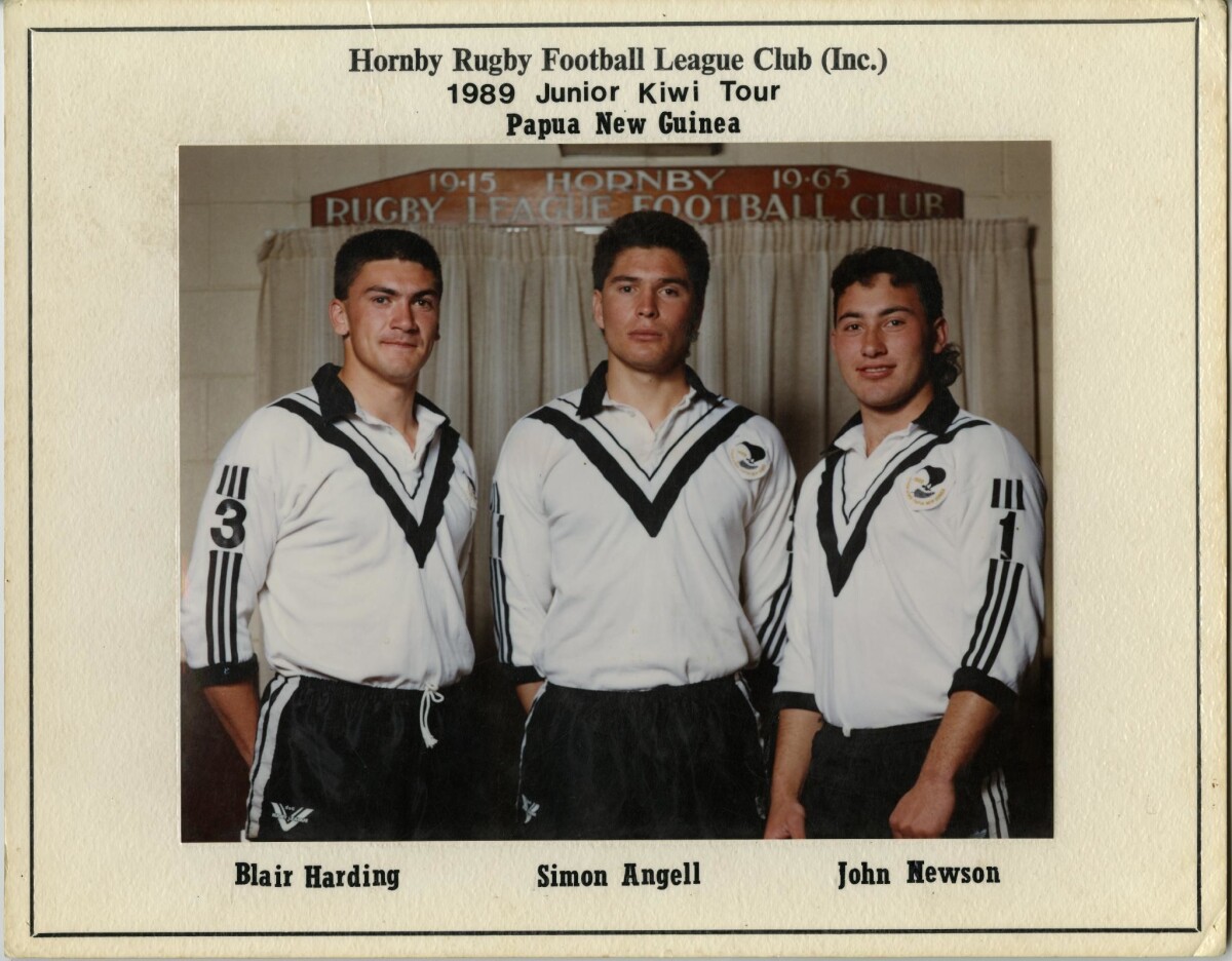 Hornby Rugby League Football Club 1989. Junior Kiwi Tour Papua New Guinea. 3 players made the touring junior team that toured Papua New Guinea and went unbeaten, all belonged to Hornby Club.