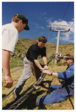 John Foulds and Wayne Watkins resplice the cable for the Christchurch Gondola.