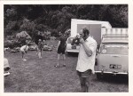 "Christchurch families enjoying a break just north of Kaikoura at Rakautara. We pronounced it 'Ra-cow-tra' back then. Now I know different and love working on the correct pronunciation. My uncle had a bach here where we took many holidays. My dad 'Ron' is the one with the camera. Penny, Sally, John and George play cricket in the background. The Commonwealth Games sticker on the back of the Austin 40 shows we are a Christchurch family and it must be around the mid 1970s." - Contributor's note