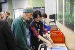 A librarian helps a man with the self return machine at the opening of Ōrauwhata: Bishopdale Library.