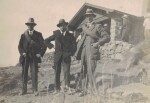 My father standing between two friends, outside the Sign of the Kiwi which opened in 1917. They are wearing their suits, white shirts and ties and carrying their ropes.