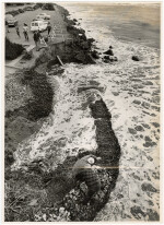 Council workers building a rockwall to prevent further erosion of Sumner Surf Club car park.