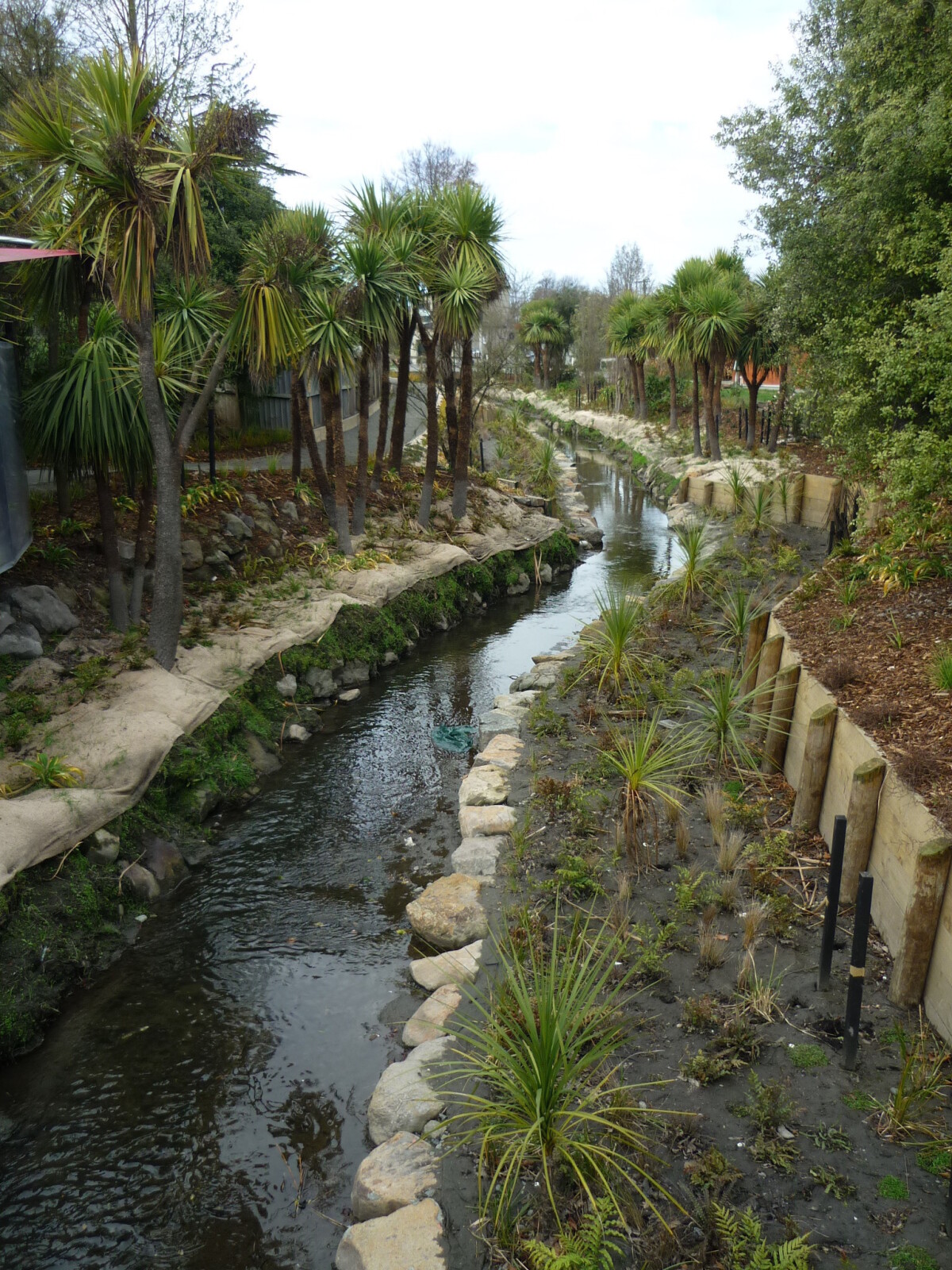 Completed flood prevention engineering and landscaping on the Dudley Creek east of
