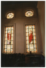 Two stained glass windows from the interior of the Cathedral of the Blessed Sacrament at 122 Barbadoes Street.