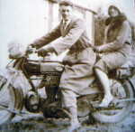 "Initially, I thought this photo was of my grandad Cyril with his sister Mavis. Of course, I only remember him as an old man (actually a grumpy old man). So when I first saw this photo and thought he was him and on a Harley, and looking so young...well, he seemed a different person. Turns out the man is a different person. So who is this dashing Cyril taking my great aunt for a spin on a Harley? Evidently Mavis and her sister Gwen were quite adventurous women and often hung out with 'the fast set', as my mother described." - Contributor's note