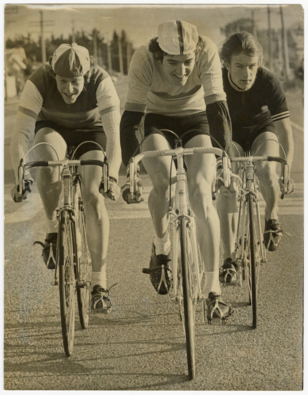 The scratch riders in the Christchurch to Akaroa and return race, from left, Chris Hogan, Alan Campbell and Toni Horne.
