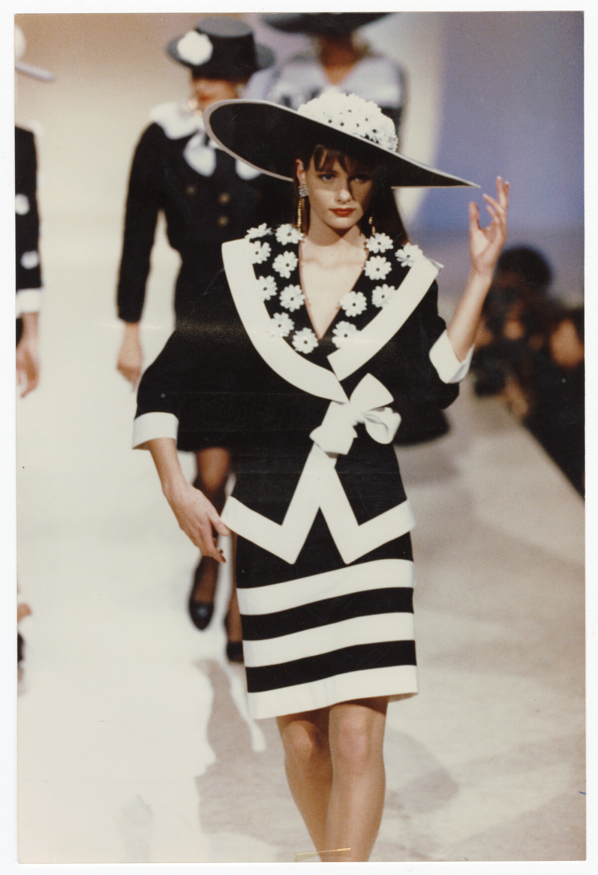 A model on a catwalk at Corbans Fashion collections at the Pan Pacific Hotel in Auckland, wearing a race day outfit by Barbara Lee.