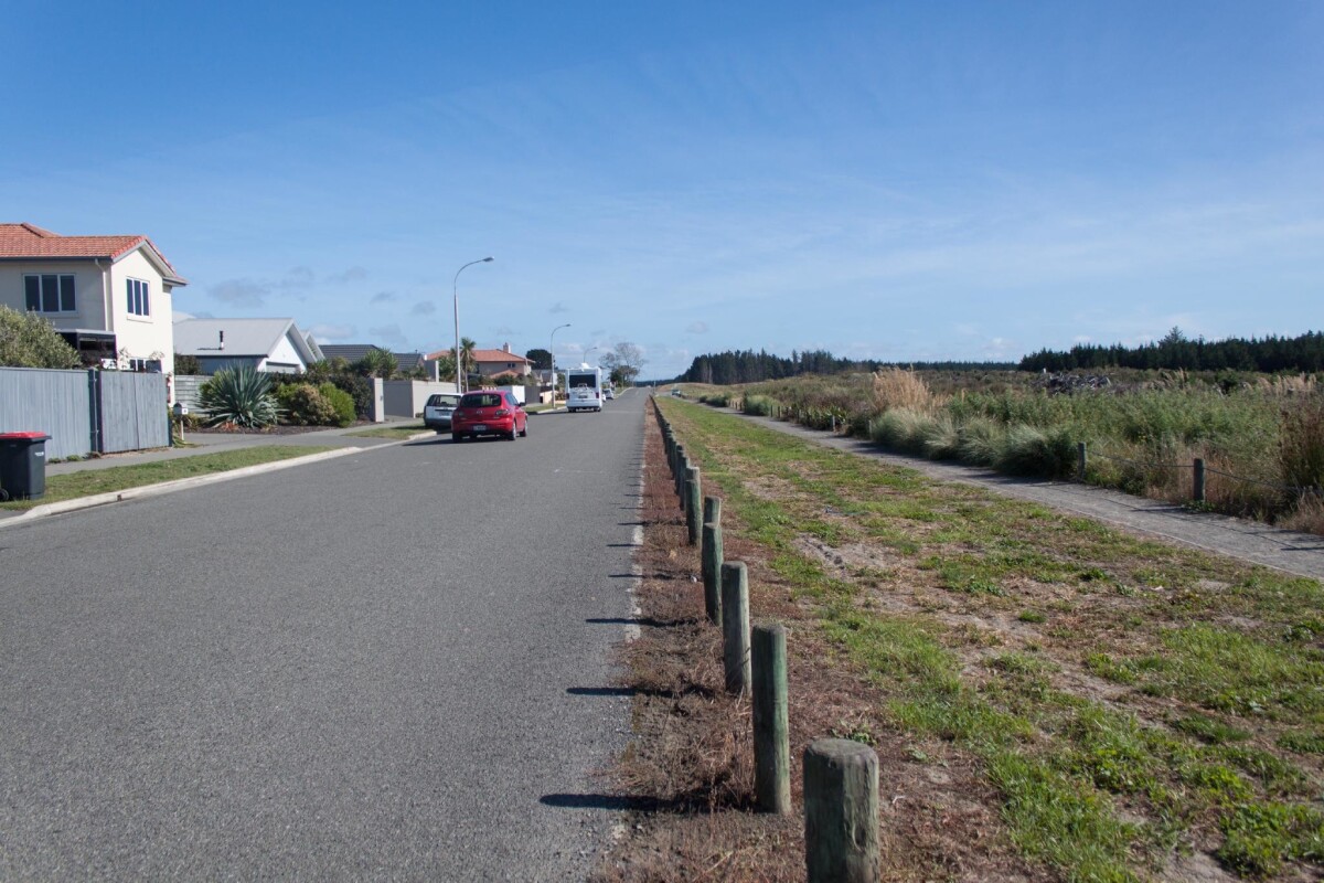 View along Aston Drive, Waimairi Beach looking towards Bottle Lake Forest.