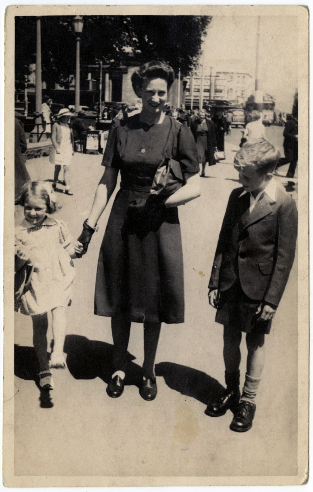 Mother, brother and self outside Christchurch Cathedral. Old bank in the background.