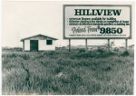 Sign advertising the Hillview subdivision on the corner of Linwood Avenue and Dyers Road with a house in the background.