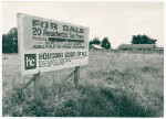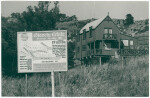 Exterior of a house with a sign from developers Smith Developments Ltd advertising sections for sale on the Glenelg Estate, Murray Aynsley Hill.