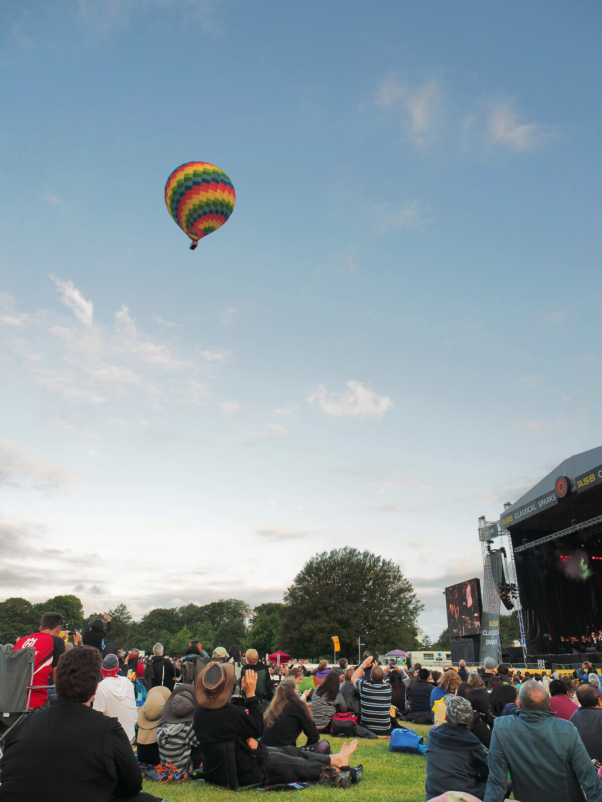 A very unexpected hot air balloon flew over the Classical Sparks concert in North Hagley Park in the middle of the performance.