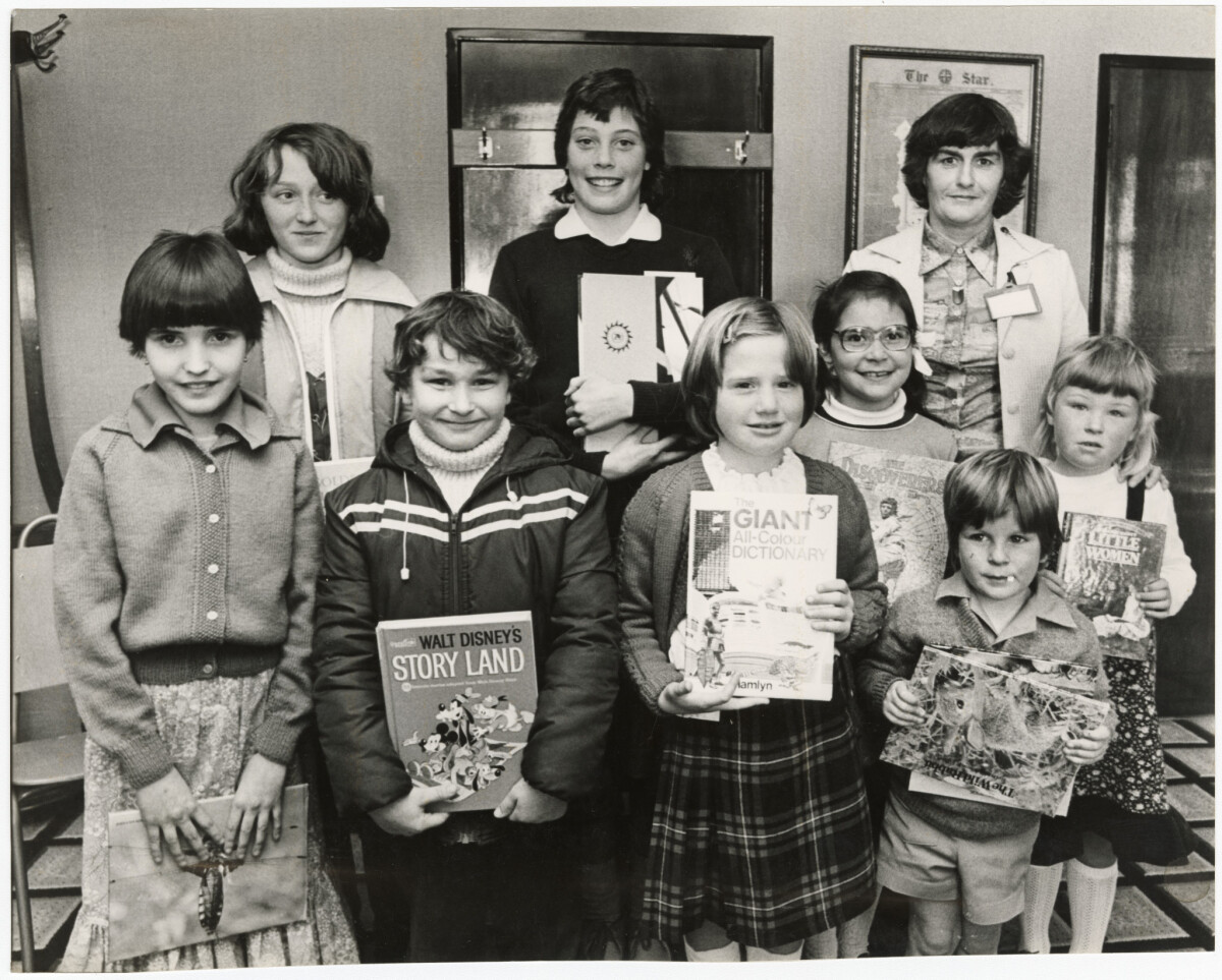 Starlets with winning colouring competition entries during a presentation for winners during Deaf Awareness Week. From left to right (front) Diana Nemeth, Jason Hoving, Janice Brown, Darren Jones, (back) Nicola Whitta, Karen Day, Aneta Timu, Sheree McQuillan and Isabel Robertson, President Sumner Society for Deaf Children.