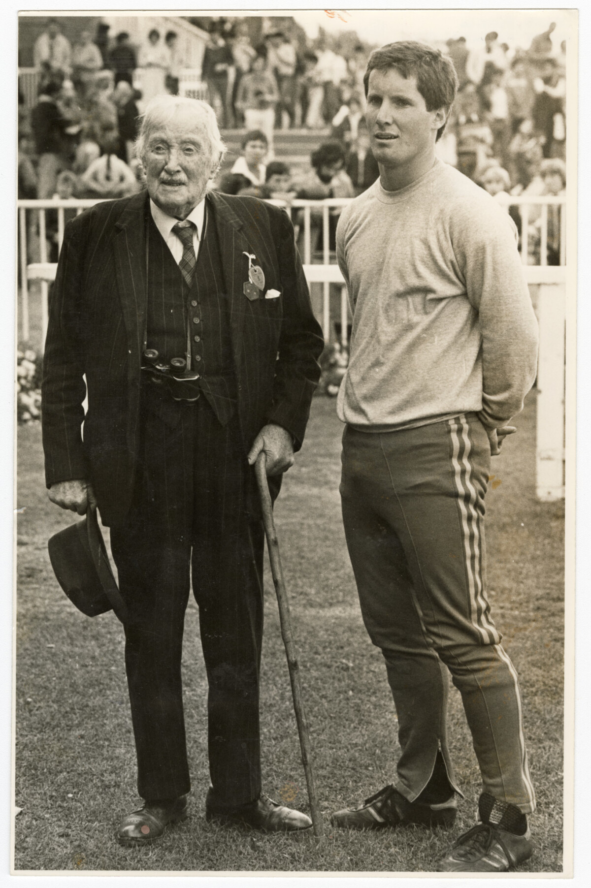 William Deans, aged 93 (left) with his grand-nephew, Robbie Deans aged 23. William Deans is the brother of Bob Deans, the 1905 All Blacks rugby player and Robbie Deans plays for Canterbury rugby team.