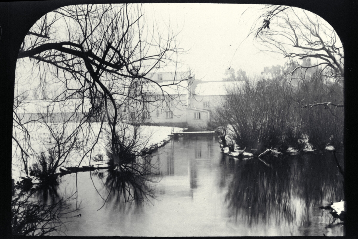 The water-powered mill was built by Wood Brothers Ltd in 1861 ready for the 1862 harvest near the site where the Avon River meets Fendalton Road.