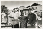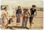 Members of the Ai'ono family posing against railings at the New Brighton top car park along Marine Parade. Family members are Fa'asala, Melany, Saunoa, Keresia, Fa'asala JR and Lei.