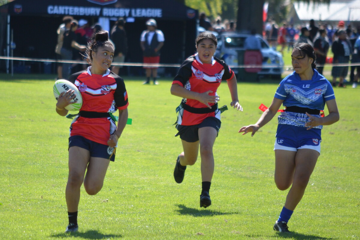 Youth girls team vs Malie (South Island NZ Samoan team) women's nine aside rugby league. Malie is the South Island NZ Samoan team.