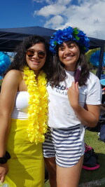 Lei Mohi and Helena Tuia in house colours at Athletes Day, Rannerdale Field, Suva Street, 2019.