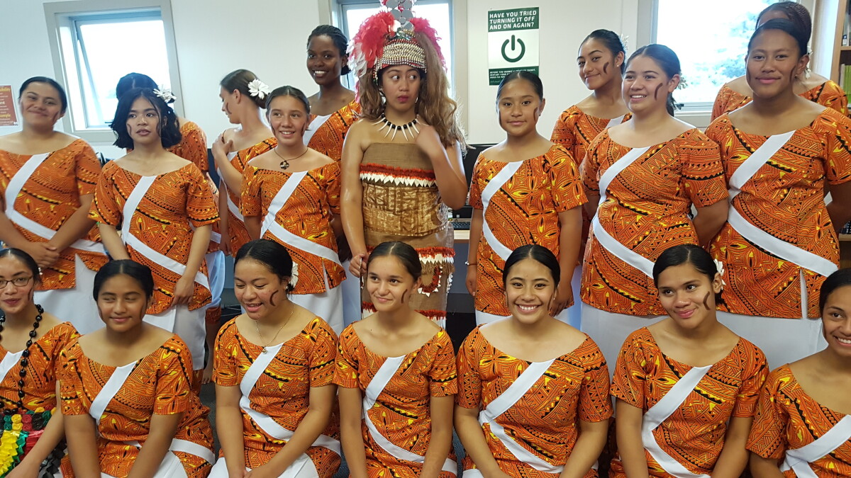 SPac Pac (sPacifically Pacific) Academic Awards Ceremony for top Pasifika students in all Christchurch Schools at Christchurch Boys High School, 2019. Lei Mohi, Malia Lenati, Sioeli Ofa and Helena Tulia from Middleton Grange School are in the centre of the photograph.