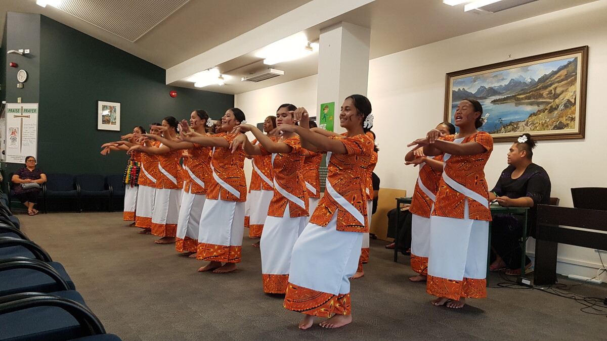 Young members of the Cook Island community dance to celebrate the 60th birthday of Rangi Oberg.