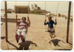 Keresia & Saunoa Ai'ono on the swings at the playground along Marine Parade next to the beach at New Brighton.