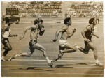 New Zealand athlete Mene Mene winning the second heat of the decathlon 100 metres, followed by Sanitesi Latu (Tonga), Robert Lethbridge (Australia) and Sitiveni Rabuka (Fiji) at the Christchurch Commonwealth Games at QEII Stadium.