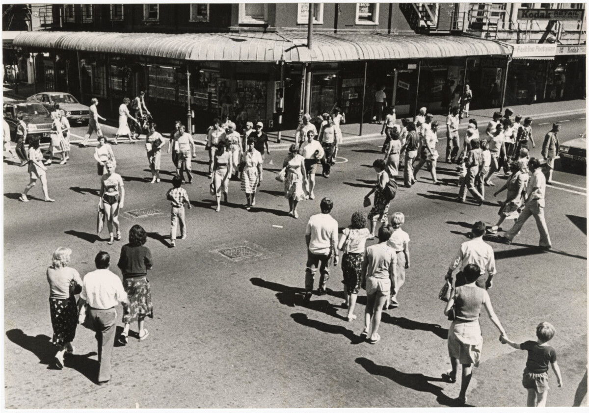 Pedestrians on a Barnes Dance / Diagonal crossing at an intersection with Colombo Street.