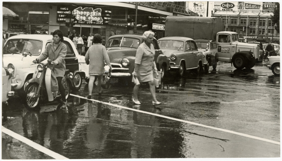 Traffic and pedestrians south of Cathedral Square