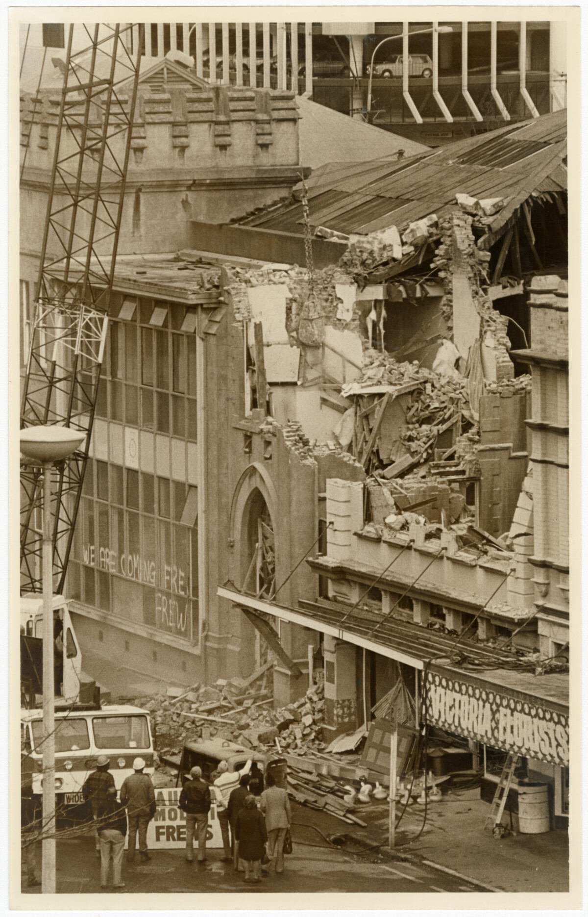Demolition of the Salvation Army citadel on Victoria Street near Victoria Square.
