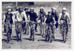 A group of eight young people and instructors from the Recreation for Youth Trust on bicycles at the end of their Te Wai Pounamu journey at Spencer Park. The journey was over 10 days and consisted of walking, canoeing, rafting and cycling to retrace Māori trails and early European routes from the west to east coast of the South Island.
