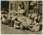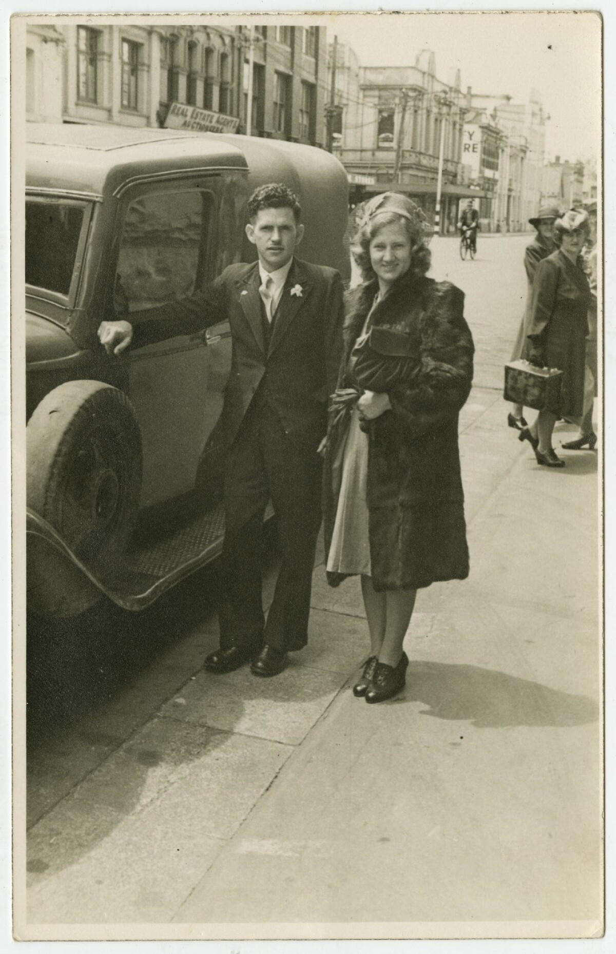 Mavis and Joe O'Connell leaving on their honeymoon after getting married in Christchurch on 18 January 1947.