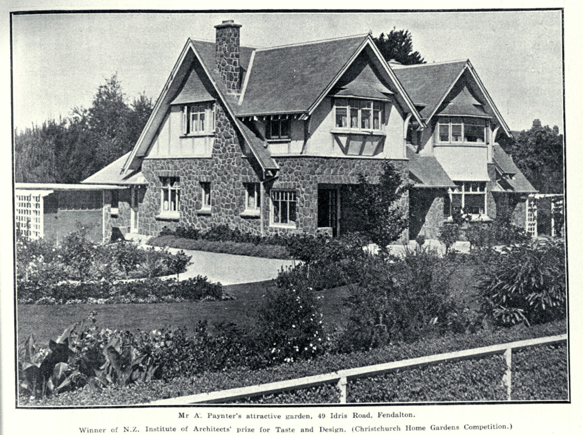 This house, Greystones, was designed in the 1920s by Hugh Hamilton, a director of the building firm Paynter & Hamilton, for his business partner and brother-in-law, Albert Paynter. In 1930 the garden was the winner of the New Zealand Institute of Architects' prize for Taste and Design in the Christchurch Home Gardens Competition